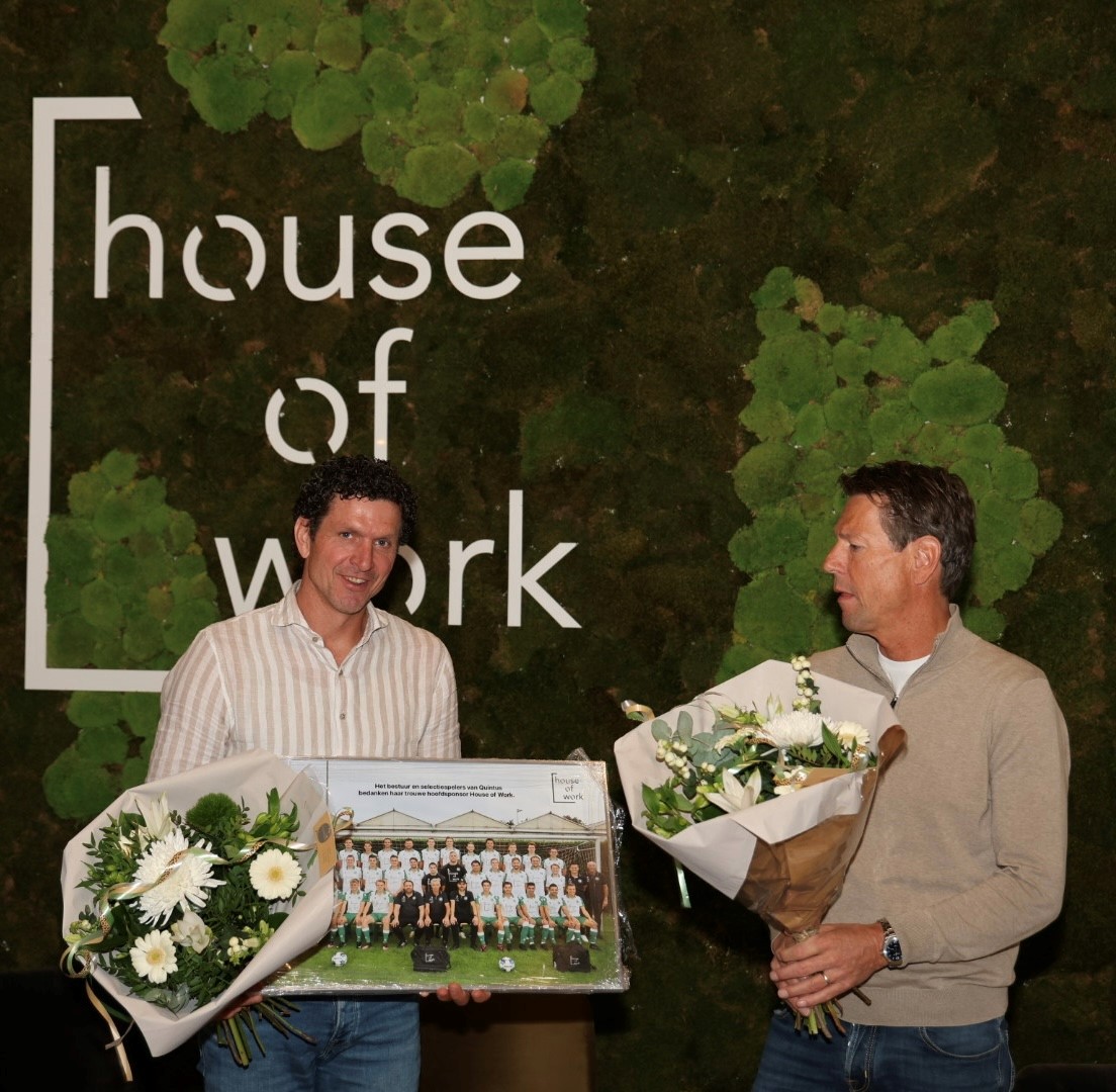 Namens het bestuur en de selectie van Quintus, sprak Angelo Zwirs, aanvoerder van Quintus 1, de grote dank uit naar House of Work en werden een grote selectiefoto en 2 bossen bloemen overhandigd aan Ed en Leon Grootscholten.
