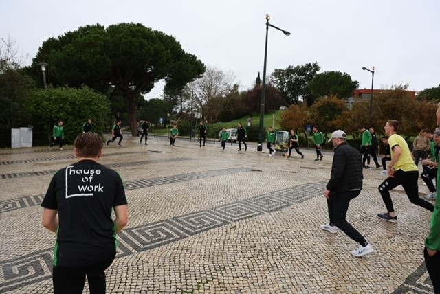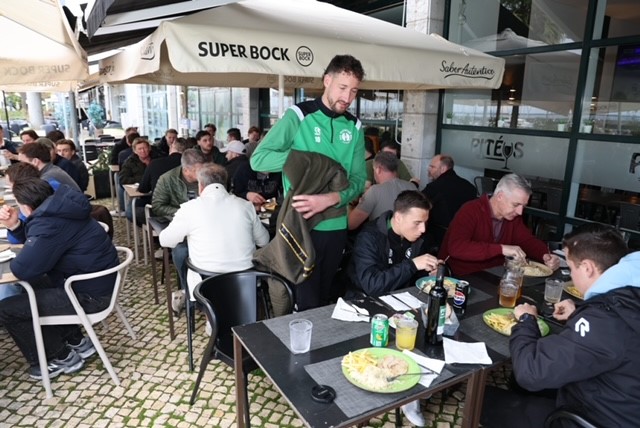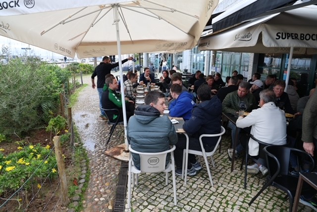 Om 14.30 uur was er een gezamenlijke lunch in het nieuwe gedeelte van Lissabon. Vlakbij de jachthaven. Zomers moet dit er fantastisch uitzien, maar nu was het helaas bewolkt. Er werd buiten een maaltijd geserveerd, waarna binnen de pub-quiz werd gehouden. Zo’n 45 vragen kwamen op de aanwezigen af en er werd driftig geopperd wat de juiste antwoorden op de vragen zouden zijn.