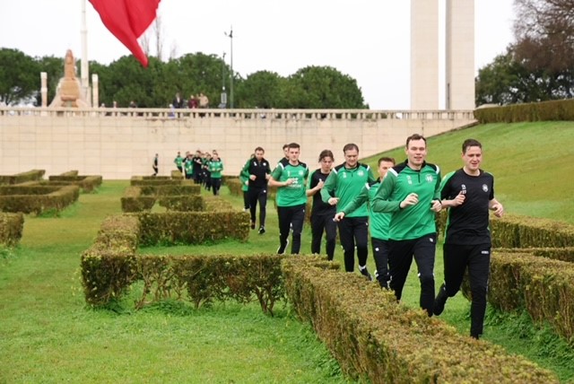 Om 11.30 uur vertrok de selectie naar het park in de buurt van het hotel. Eerst werden er een paar rondjes hardgelopen en daarna werden er enkele core-oefeningen gedaan. Tenslotte werd er nog even wat hardgelopen in het park, waarna het weer terug ging naar het hotel.