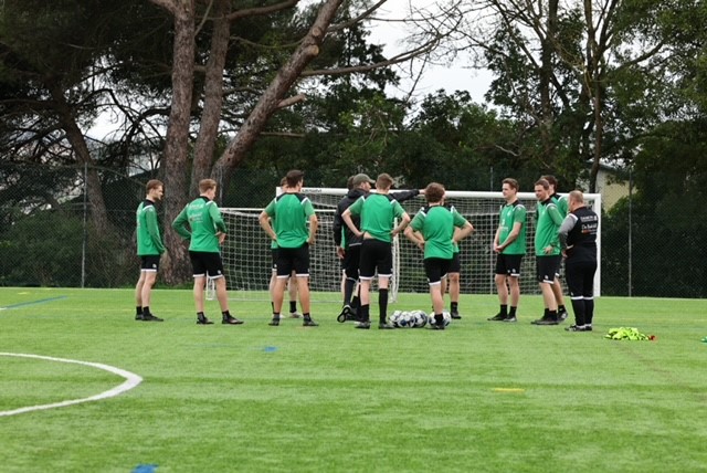 Er werd flink hard getraind vandaag. Na de warming-up eerst conditiewerk, daarna kleine partijtjes van 6 toen 2. Daarna werd het afronden op het doel beoefend en tenslotte een grotere partijvorm.