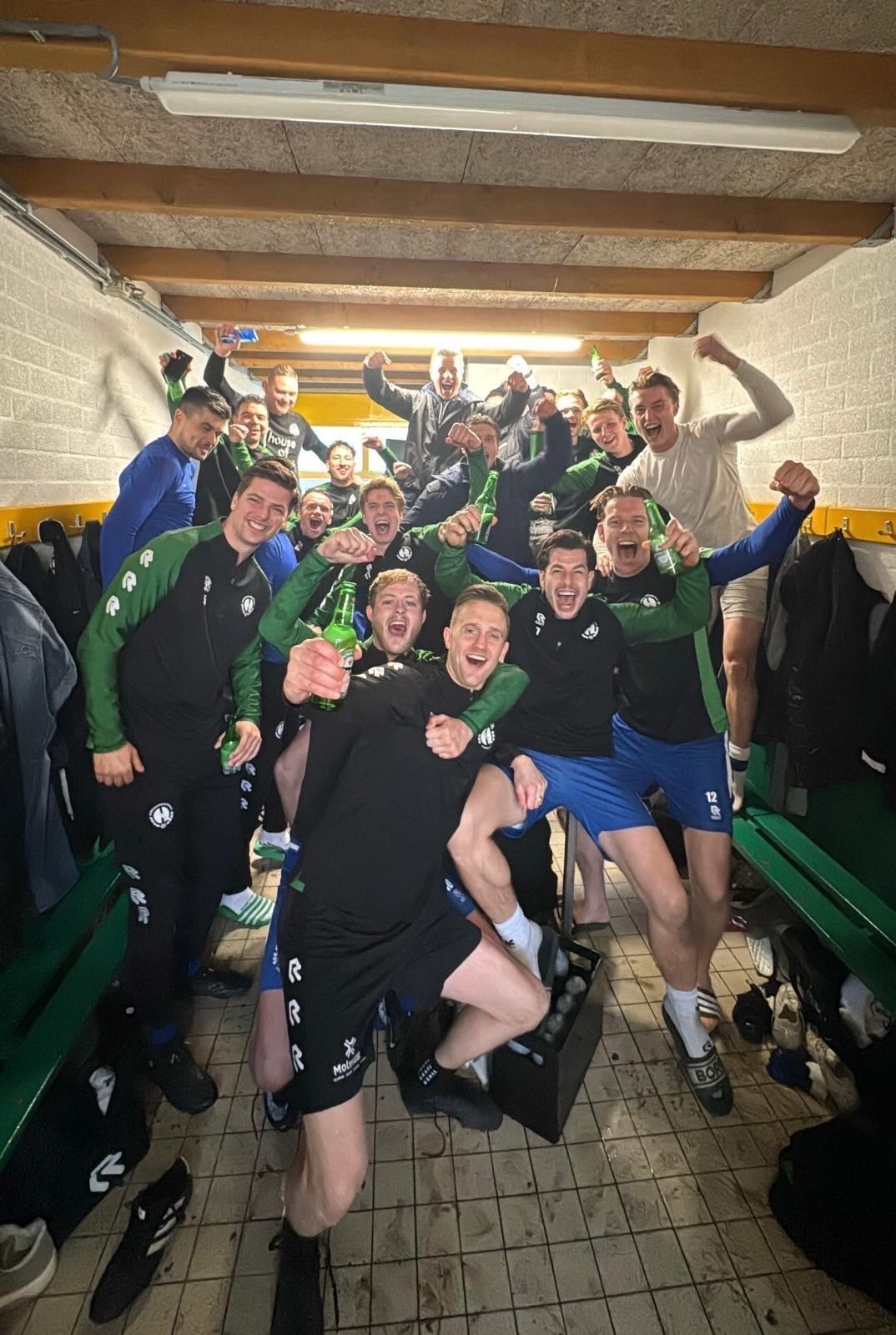 Wat een feest in de kleedkamer en met de meegereisde supporters!